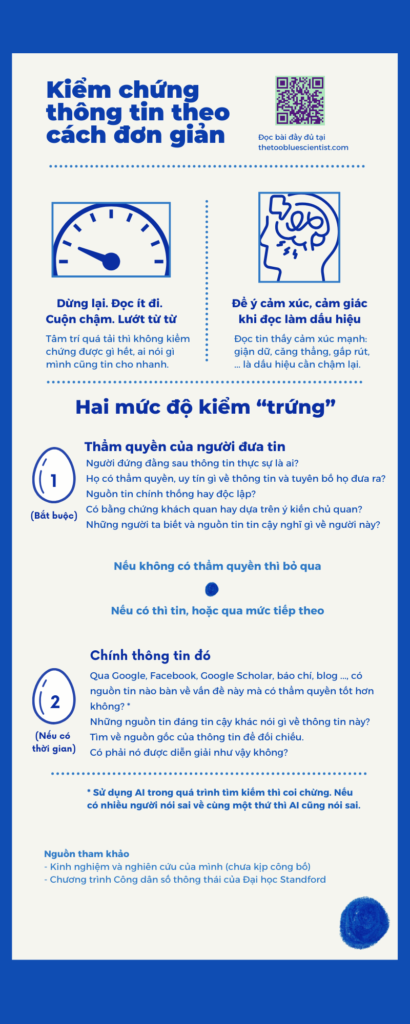 Tạm chia ra hai mức độ kiểm chứng thông tin. Tuỳ vào thời gian và sự nghiêm túc bạn có mà chọn sử dụng.