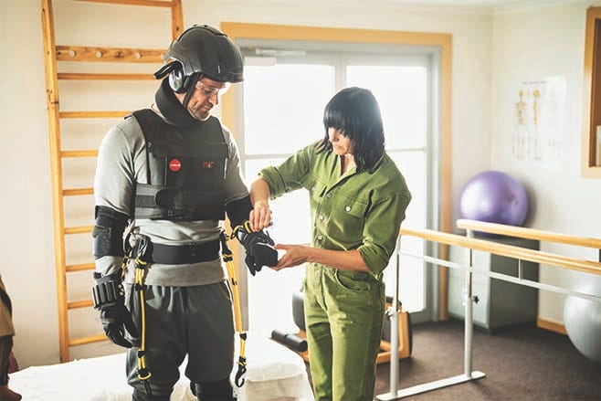 AgeLab phát triển bộ đồ đặc biệt AGNES [3, 5], “Hệ thống mặc vào là già ngay”. Mặc nó vào, tâm hồn bạn được nhét nút vào một cơ thể già nua 70 tuổi. Bộ đồ này đã xuất hiện trong series phim tài liệu Limitless (2023), do Chris Hemsworth (Thỏ trong Marvel) làm nhân vật chính, đi khám phá các giới hạn cơ thể người. Nhìn anh chàng cơ bắp cuồn cuộn đi lại chậm chạp và khó khăn trong bộ đồ là đủ hiểu: “Mặc nó vào kinh khủng lắm. Tôi không nhìn rõ, không nghe rõ gì hết. Mọi thứ cứ như đóng lại với tôi” – anh chàng cơ bắp cuồn cuộn hay quay búa nói trong phim.